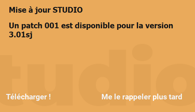 En lançant votre logiciel, un message apparait lorsqu’un nouveau patch est disponible :