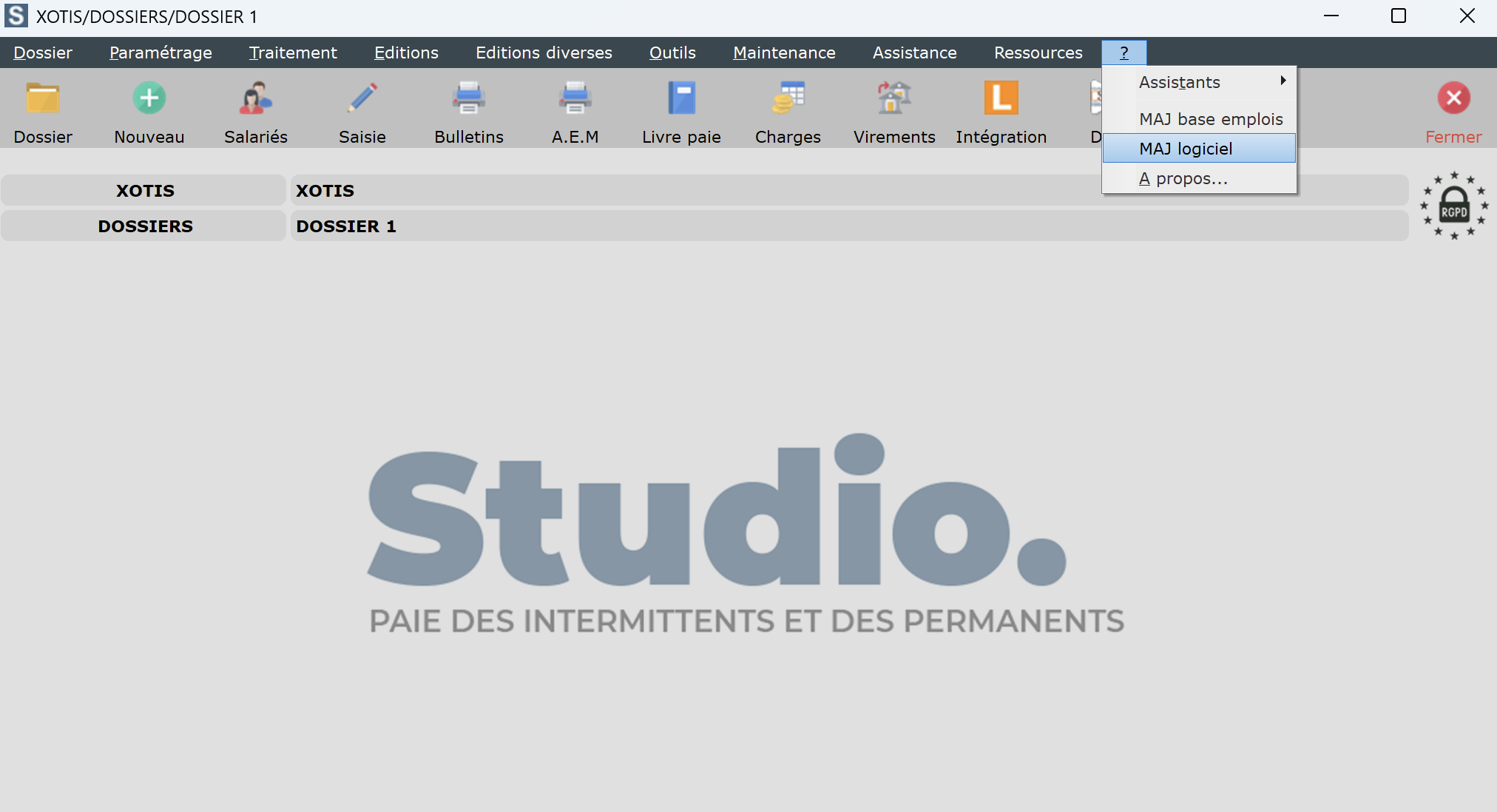 Si vous n’avez pas eu le temps de cliquer sur le la fenêtre au lancement, vous pouvez toujours lancer le téléchargement du patch à partir du menu logiciel. Cliquez sur ? disponible dans la barre de menu, puis sélectionnez MAJ logiciel.