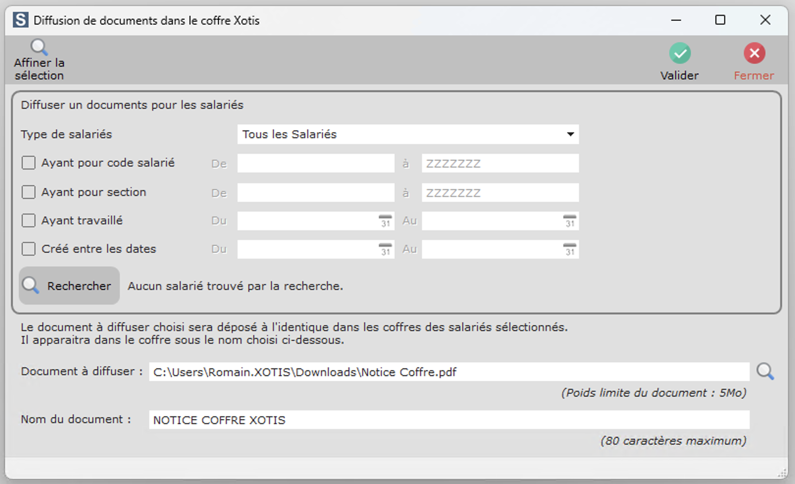 Votre document sera alors déposé dans chaque coffre des salariés sélectionnés.