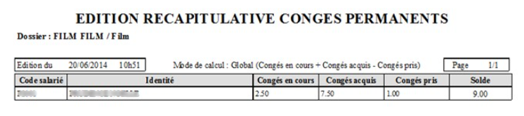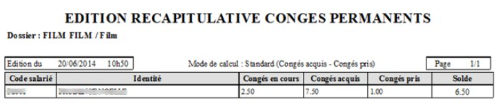 Edition liste récapitulative congés permanents