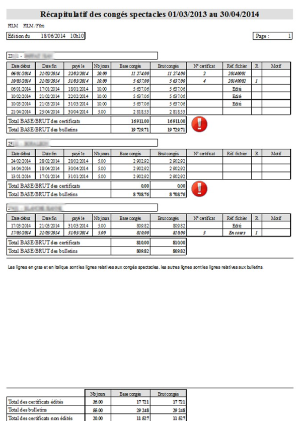 Edition liste récapitulative des congés spectacles