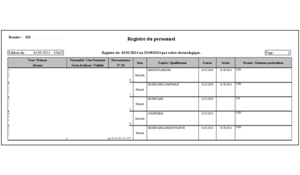 Permet l’édition du registre unique du personnel.