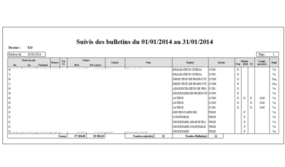 Du 01/01/2014 au 31/08/2014 – Dans l’ordre alphabétique – Salariés permanents – Détaillé – Avec mention