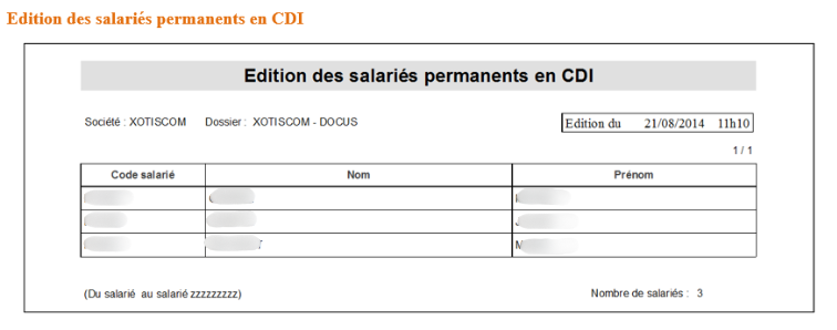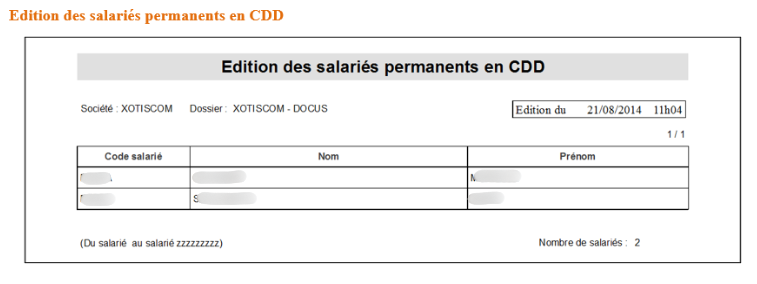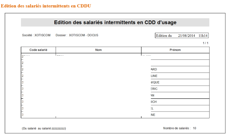 Permet l’édition d’une liste des salariés, permanents ou intermittents, par type de contrats :