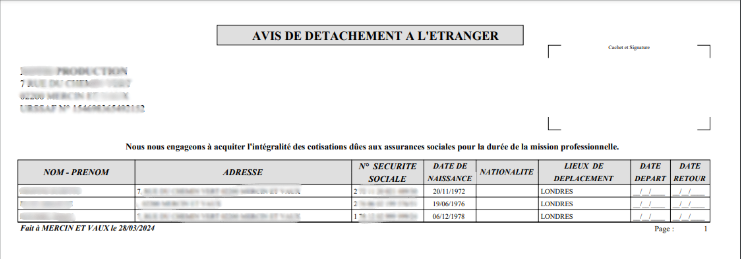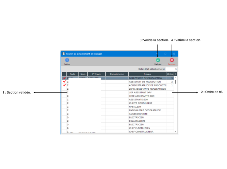 Permet d’imprimer une liste de salarié qui se déplace à l’étranger. Et de l’envoyer à l’inspection du travail.